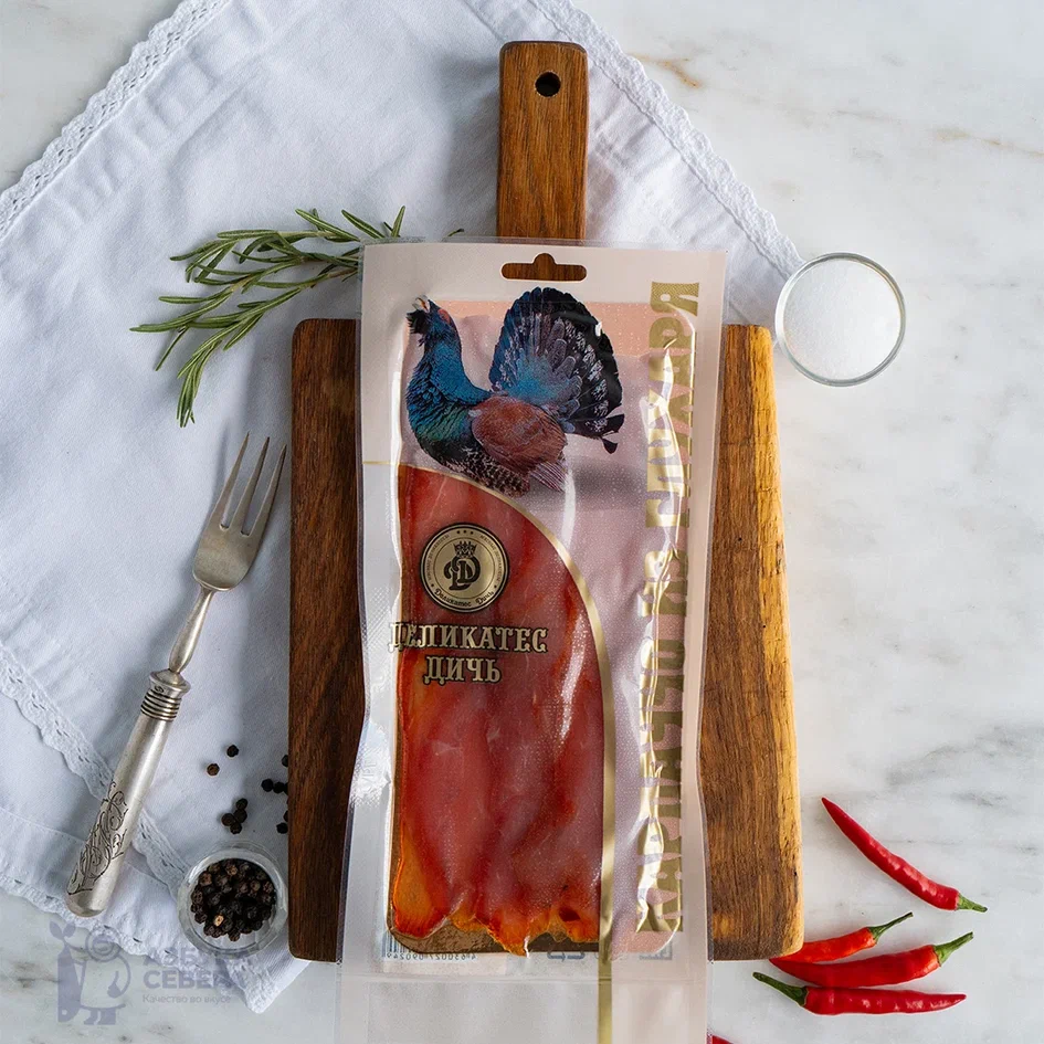 Продукт изготавливается из отборного мяса глухаря — дикой птицы, известной своим плотным и ароматным мясом. Технология приготовления карпаччо позволяет сохранить все полезные свойства и природный вкус. Мясо проходит медленный процесс созревания и вяления, что придает ему особую текстуру и глубину вкуса. Вакуумная упаковка гарантирует сохранность свежести и потребительских качеств продукта на протяжении всего срока годности.