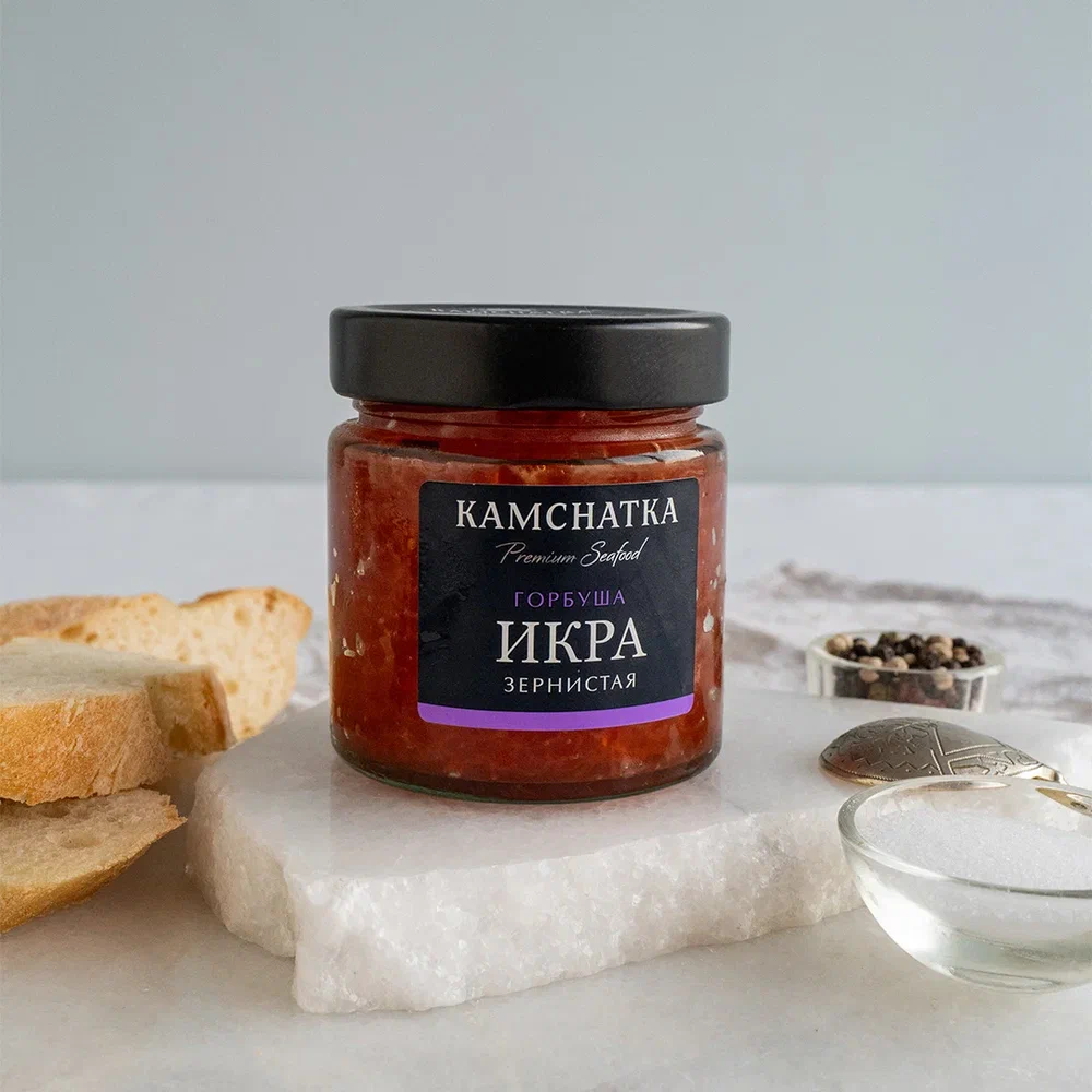 Зернистая икра горбуши. Горбуша – наиболее распространенный представитель семейства лососевых. Ее икра среднего размера, имеет оранжевую окраску. По сравнению с другими видами красной икры, она не является дефицитной, и чаще всего присутствует на наших застольях.