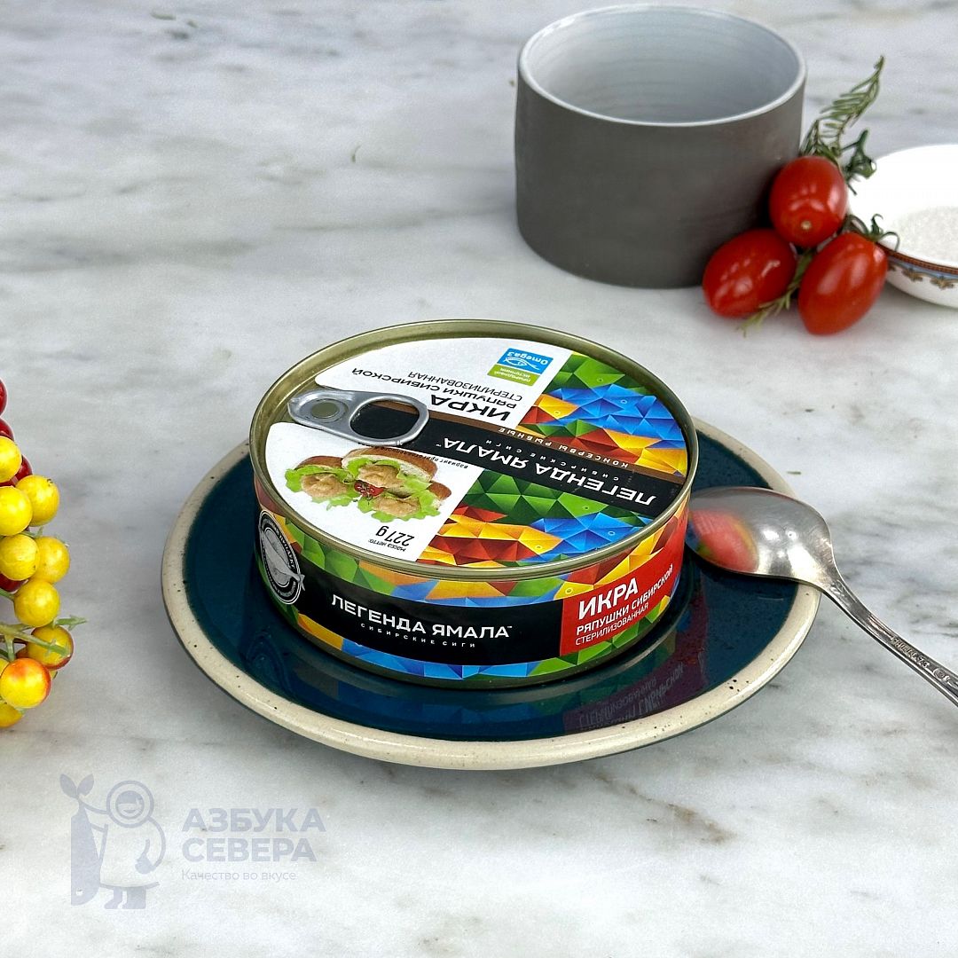икра ряпушка Сибирской, вода питьевая, масло растительное, соль, перец черный, перец душистый.