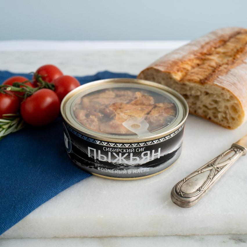 Пыжьян копчёный в масле — вкус сибирской тайги в каждой банке. Эта благородная рыба, обитающая в прозрачных водах северных рек, издавна ценится за нежное, умеренно жирное мясо: коренные народы Сибири считали пыжьяна особым подарком природы и часто готовили его на костре с хвойными ветками — так появлялся тот самый дымный аромат, который бережно воссоздан в наших консервах.