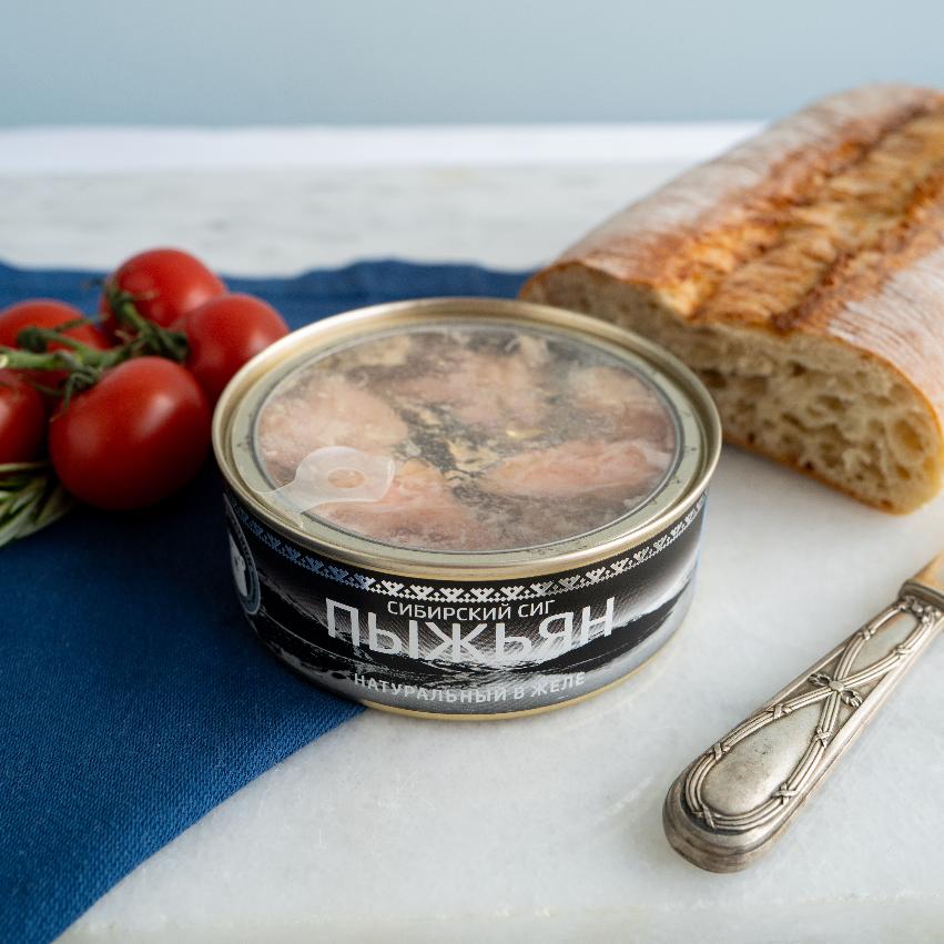 Пыжьян натуральный в желе — деликатес из сердца сибирских рек. Эта рыба, известная также как сибирский сиг, обитает в кристально чистых водах Оби и Енисея, где суровый климат и чистая экология формируют её особый вкус: нежное, умеренно жирное мясо с тонким ароматом северной рыбы. Издавна пыжьян ценился коренными народами Сибири — его солили, коптили и берегли как ценный источник сил в долгие зимы.
