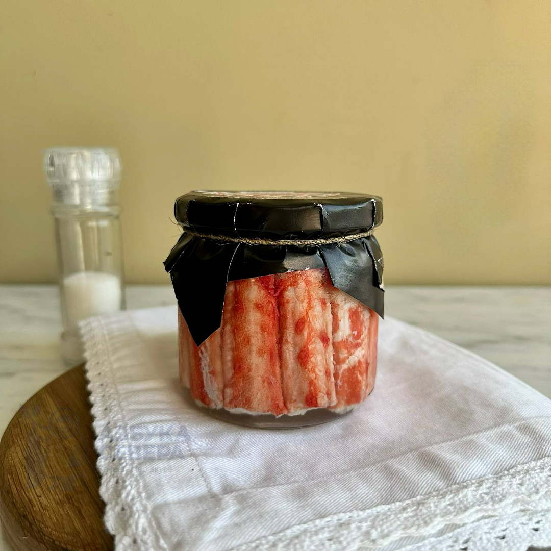 В стеклянной банке консервируют самые красивые и крупные фаланги. По вкусу консервированное мясо не уступает свежему: нежное, сочное и упругое. Крабовое мясо богато белком: 18,3 грамма на 100 грамм. А вот жиров в фалангах всего 0,6 грамм, поэтому крабовое мясо – отличная закуска для тех, кто хочет сохранить стройность.