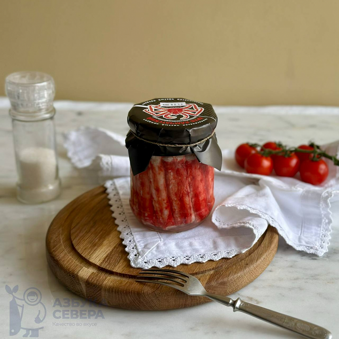 В стеклянной банке консервируют самые красивые и крупные фаланги. По вкусу консервированное мясо не уступает свежему: нежное, сочное и упругое. Крабовое мясо богато белком: 18,3 грамма на 100 грамм. А вот жиров в фалангах всего 0,6 грамм, поэтому крабовое мясо – отличная закуска для тех, кто хочет сохранить стройность.