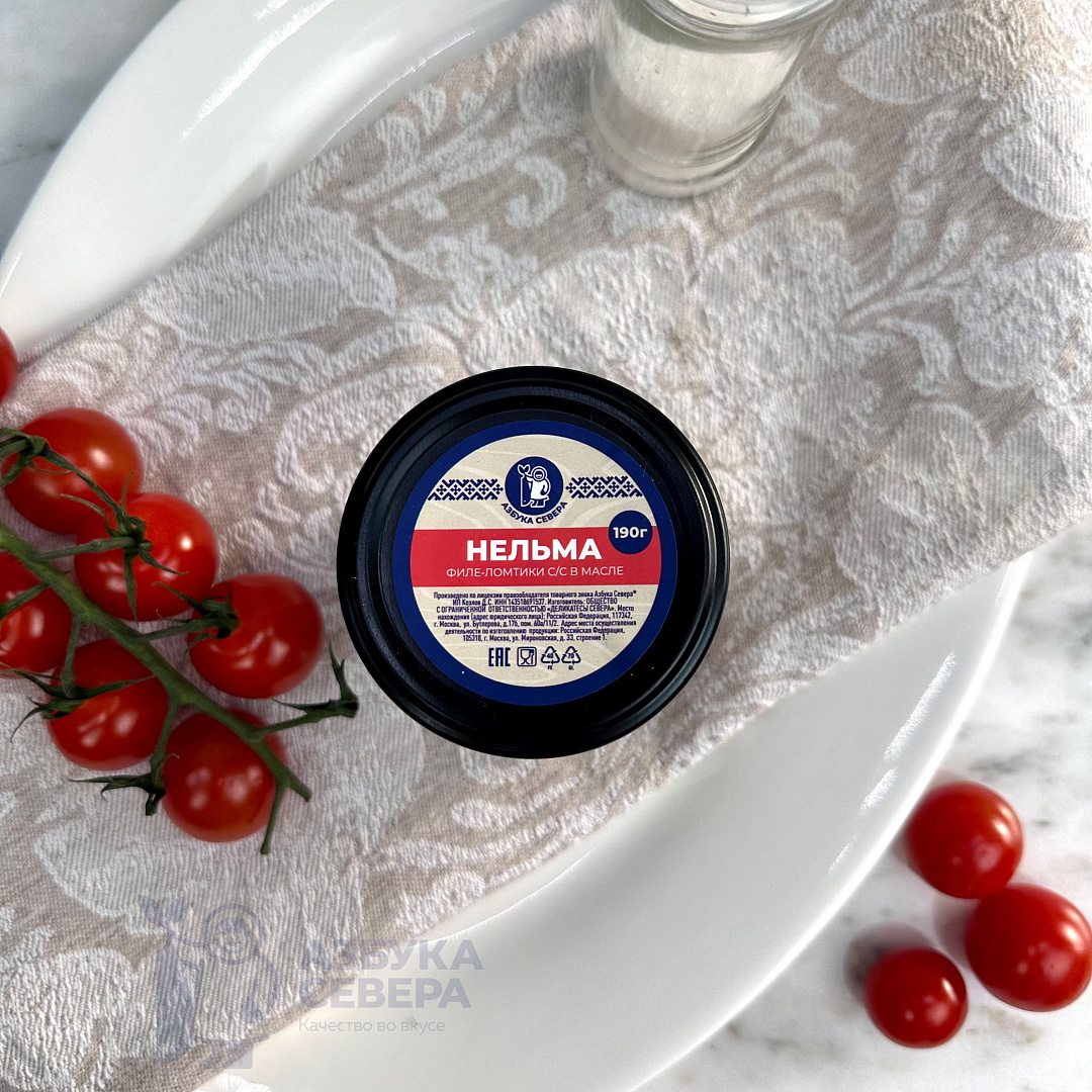 филе нельмы, масло подсолнечное рафинированное дезодорированное, соль пищевая молотая.