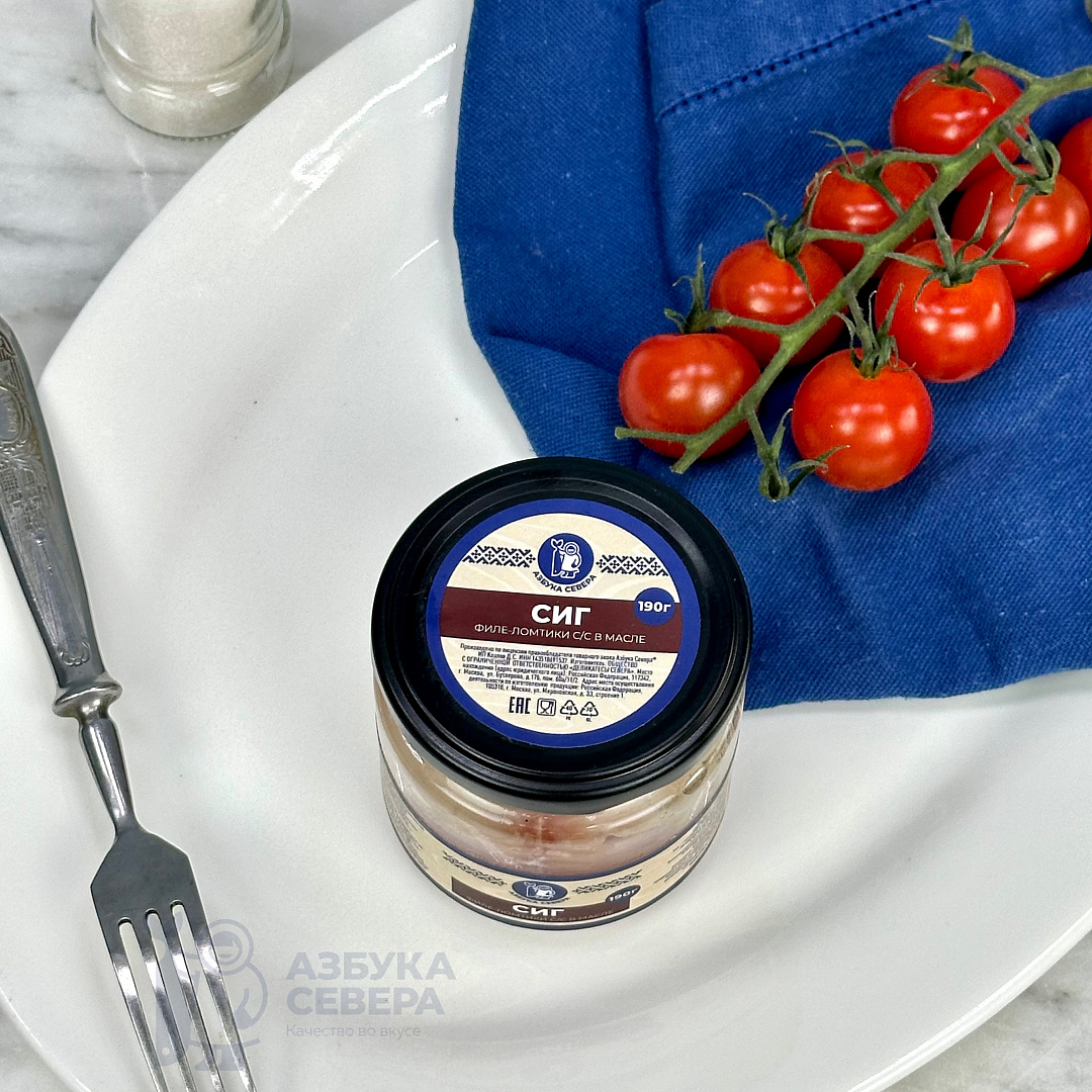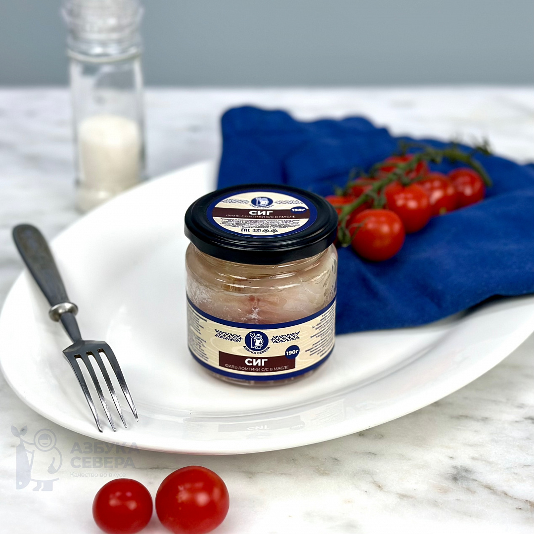 филе сига, масло подсолнечное рафинированное дезодорированное, соль пищевая молотая.