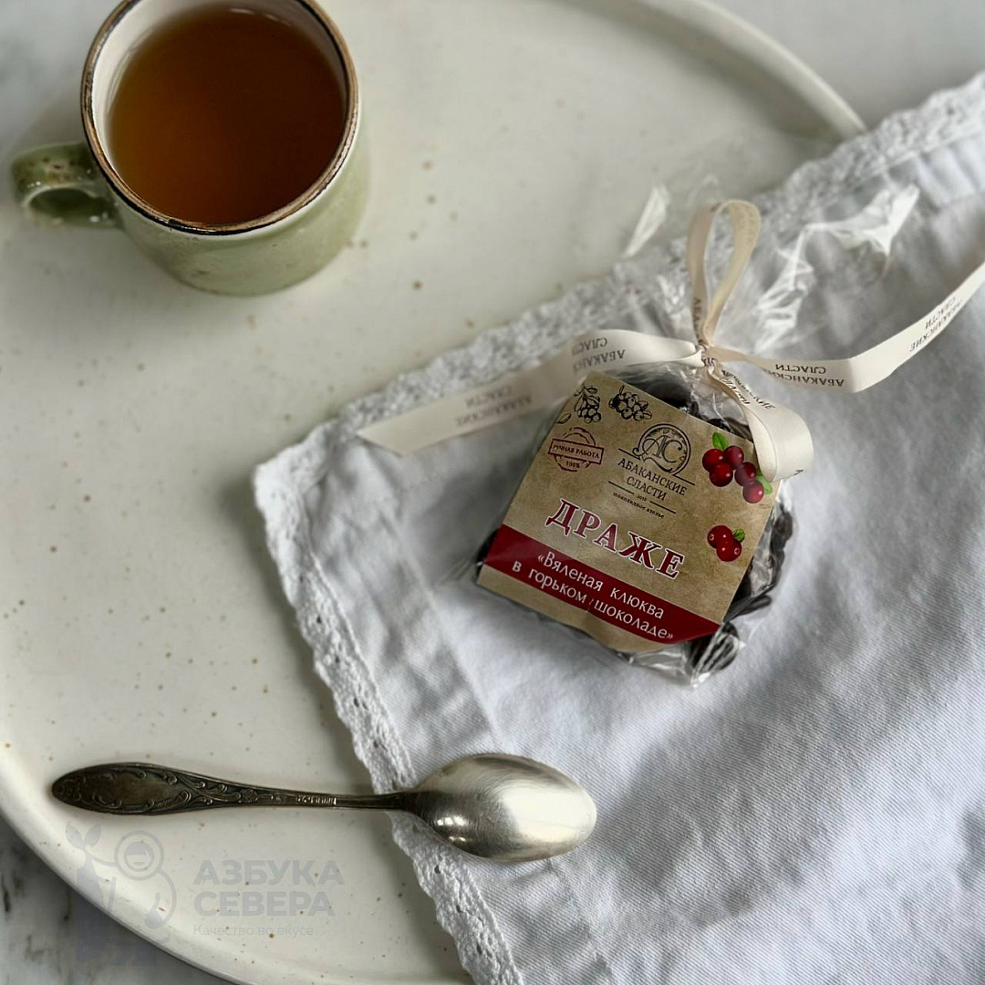 Побалуйте себя и своих близких настоящим северным лакомством — вяленой клюквой в горьком шоколаде, воплощающей в себе богатство вкуса и традиций.