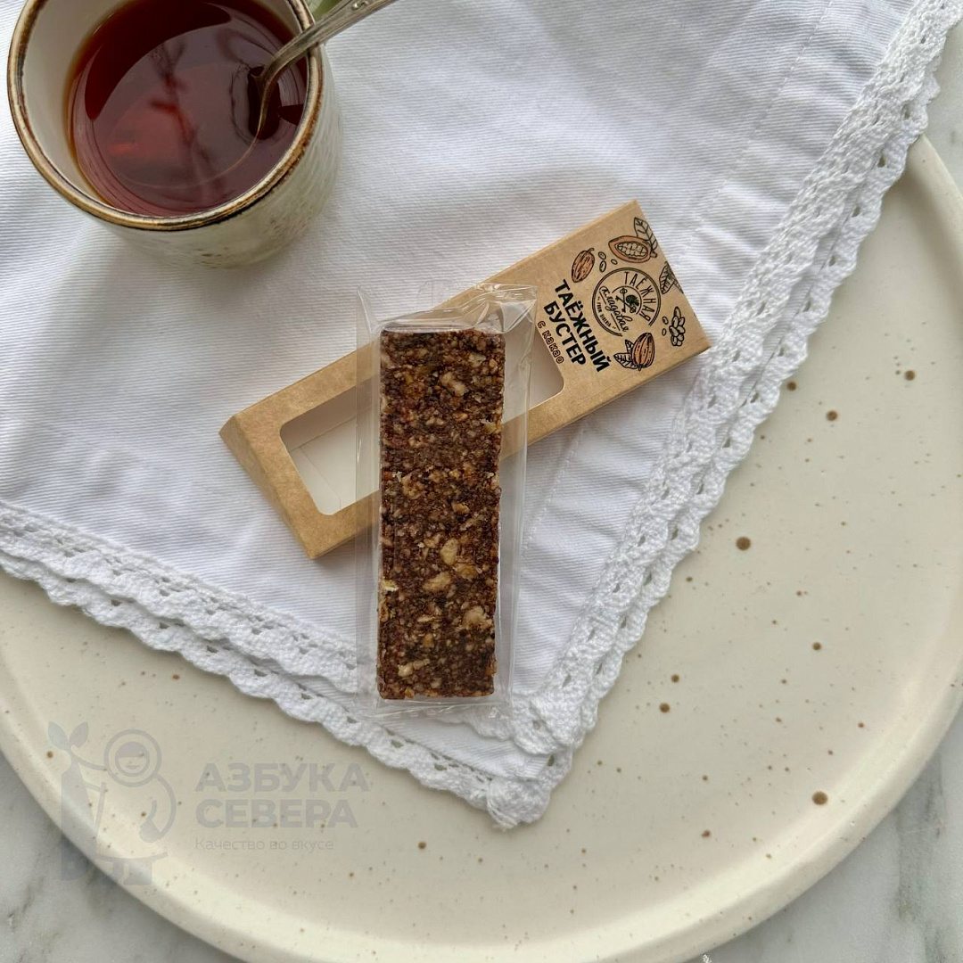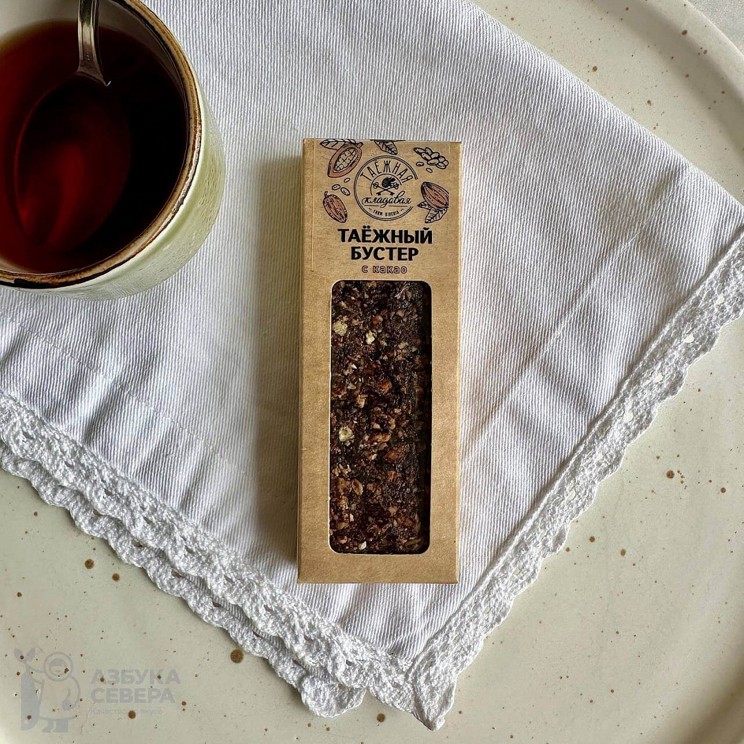 Батончик «Таёжный Бустер» с какао можно заказать в интернет-магазине «Азбука Севера» с доставкой по всей России.