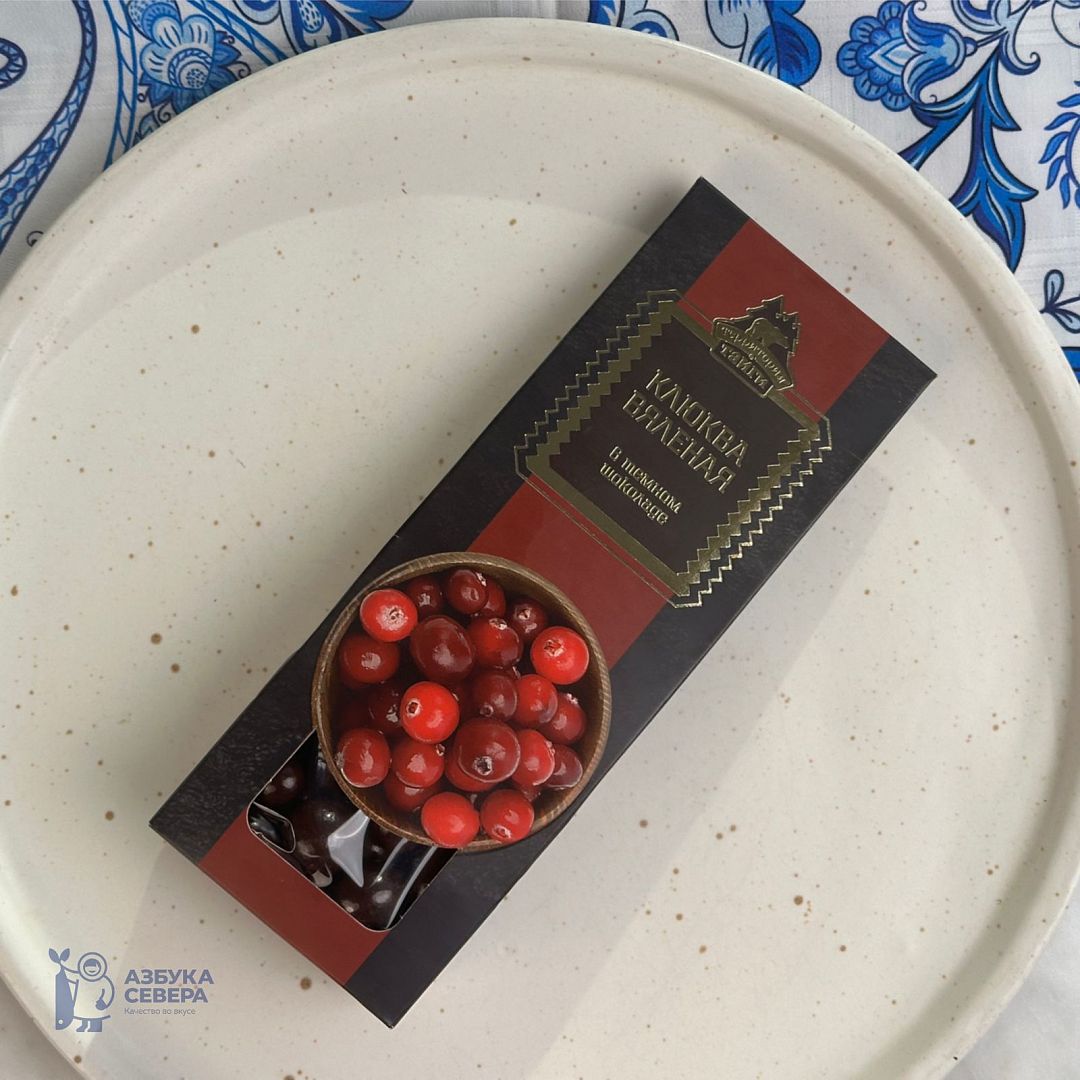 Сочетание терпкой вяленой клюквы и насыщенного горького шоколада создаёт яркий вкус с северным характером. Каждая ягодка — это гармония природы и силы.