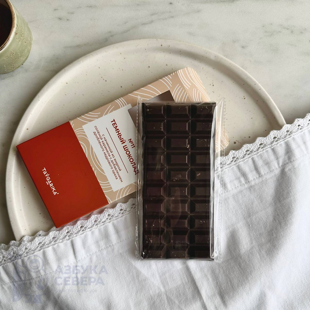 Шоколад темный с жидкой соленой карамелью и кедровым орехом  №11