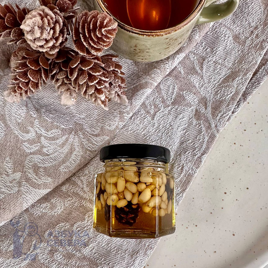 мед, кедровый орех, сосновые шишки.