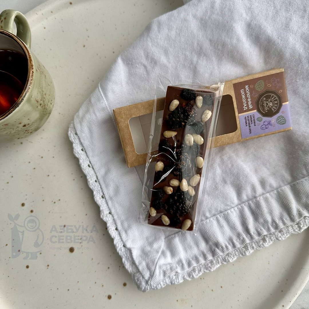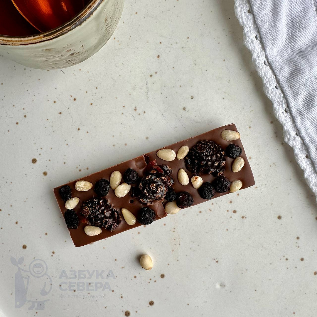 Шоколад молочный с сосновой шишкой, черникой и кедровый орех
