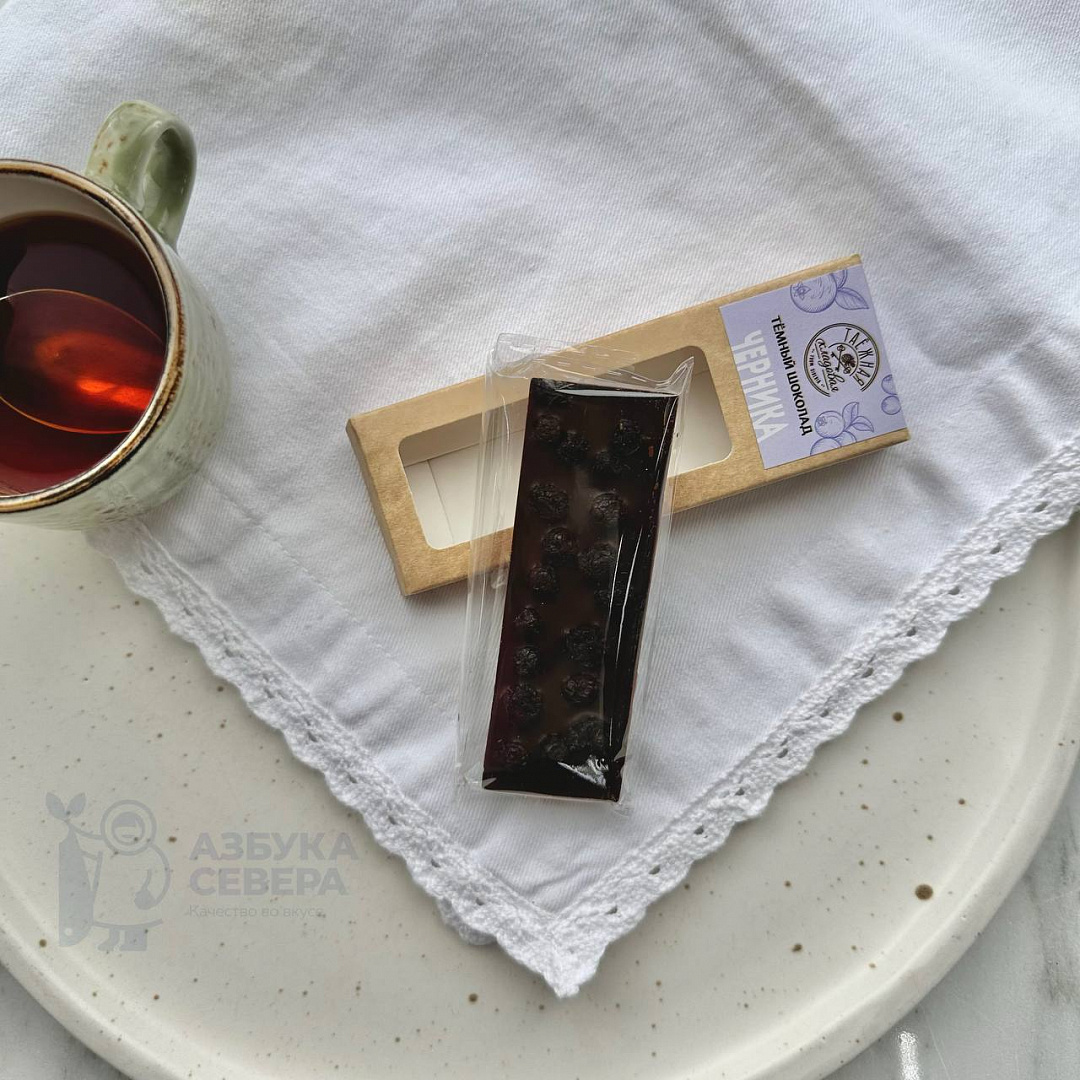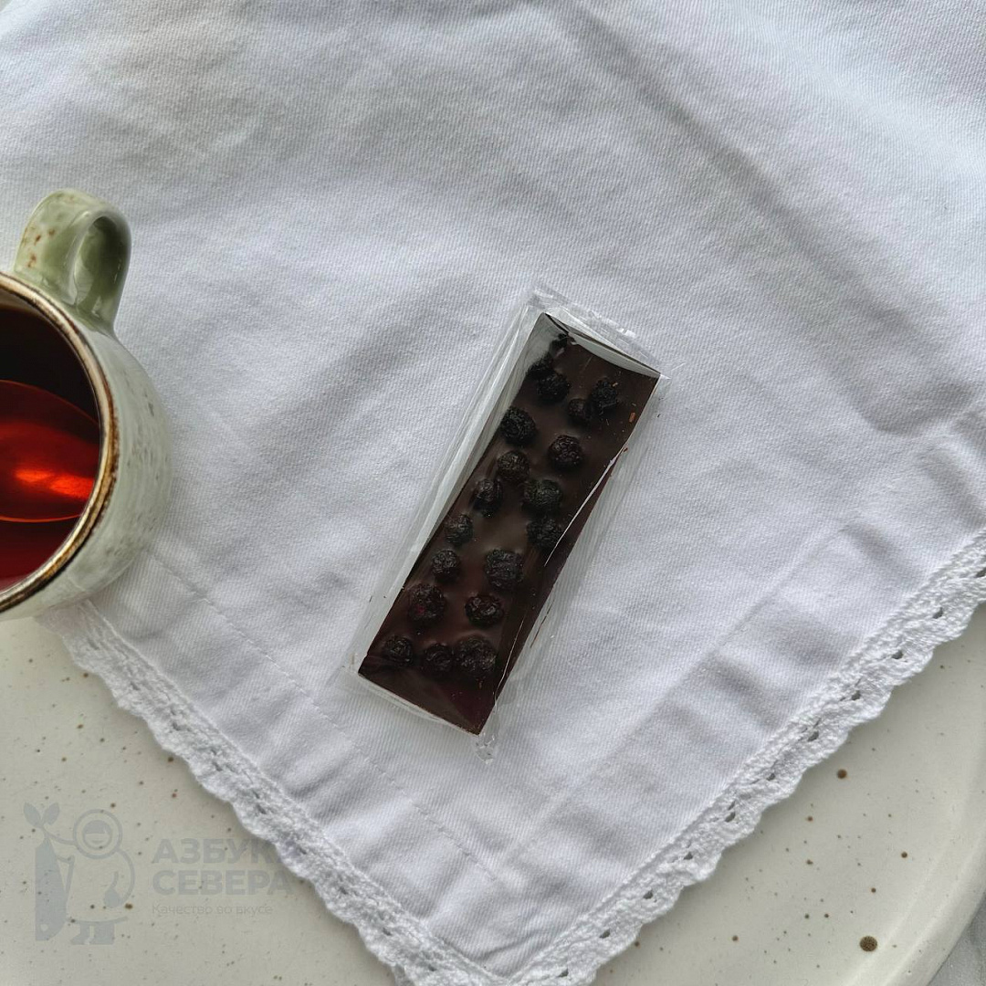 • Состав: Темный шоколад (какао тертое (53%), сахар, масло какао, эмульгатор: соевый лецитин, ароматизатор: натуральная ваниль, эмульгатор: Е476), сублимированная цельная черника.