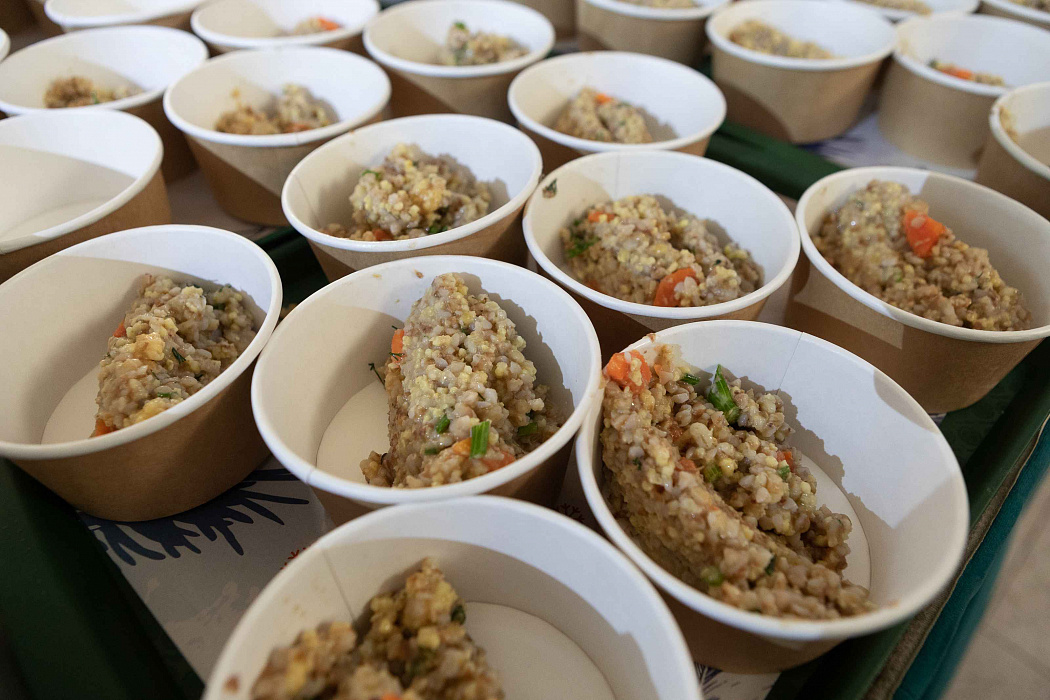 Дмитрий рассказал об особенностях приготовления пищи на фронте, отметил, что горячая пища в полевых условиях — это скорее роскошь и что основной рацион бойца состоит из сухих пайков. Сухпаек бойцов также можно было попробовать на нашем мероприятии.